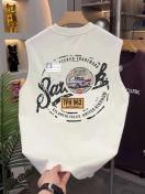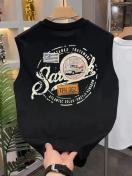メンズ ヴィンテージ アメリカン グラフィック ノースリーブ タンクトップ 100% コットン リラックスフィット 夏用シャツ レトロ トラベルデザイン ブラック カジュアル ストリートウェア メンズ サマータンクトップ 通気性抜群