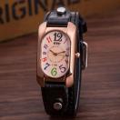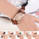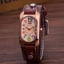 レディース ビンテージスタイル カラフルスケール クォーツリストウォッチ アナログ表示 PUレザーバンド 合金ケース ラウンドアナログポインター 電子ムーブメント