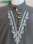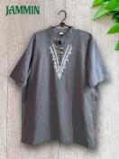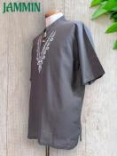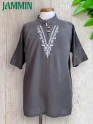 胸元にアジアンな刺繍入りの半袖クルタです。