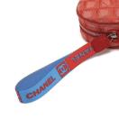 ■詳細説明/【廃盤モデル】、ニュートラベルライン・ラウンドポーチ(小物入れ),CHANELロゴ入りリストストラップ付き(長さ:16.0cm、幅:2.0cm),マットシルバー金具,ファスナー開閉式,中にオープンポケット