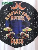 商品説明地球、キノコ、宇宙のプリント入りTシャツです。