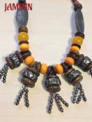 商品説明ブラスビーズやボーンビーズ、樹脂ビーズを使った個性的なネックレスです。
