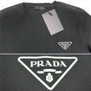 胸もとのさりげないPRADAロゴプリントがワンポイントのシンプルなメンズTシャツ。肩にはナイロン生地が使われていて、お洒落なだけでなく、ハンガーにかけても肩が出なくて実用的です。