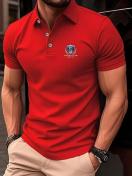 メンズ シャツ - エレガント プレイヤーエンブレム&デザイナーテキスト、クラシックカラー 半袖 夏用 フォーマル&カジュアルシャツ 日常・特別な場面に最適 上品な刺繍