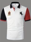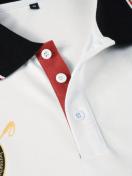 メンズ サンディエゴゴルフクラブポロシャツ ネイビーブルー&イエロー 半袖 カジュアルスタイル ロゴ&イーグルデザイン アウトドアアクティビティ ゴルフウェア ロゴシャツ ニット製 ゴルフシャツ