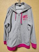 ラメピンクのプリントが可愛いジップアップパーカーになります。