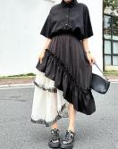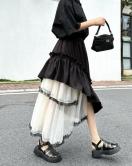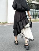 ロング丈 フレア スカート レース切り替え 大きいサイズ