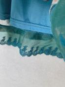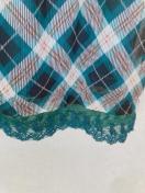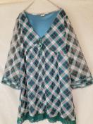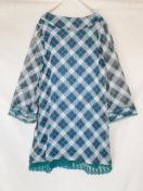 Vネック、ターコイズと黒のアーガイル柄、七分袖のチュニック、ワンピースです。