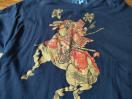 日本製 戦国 武将 プリント Tシャツ 古着 L 紺色