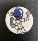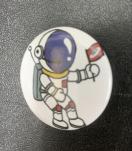 宇宙飛行士のイラストが特徴的な丸型ピンバッジ。