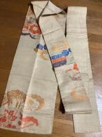 帯地は軽やかで扱いやすい素材感。デニム着物や小紋などのカジュアルな着物やモダンな和装スタイルにぴったりで、まさに背中で語るアートピース♪