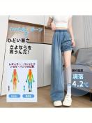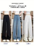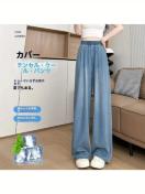 レディース デニムワイドパンツ 夏用 涼感 通気性 ストレッチウエスト 軽量 ゆったりフィット ロングパンツ バギーパンツ