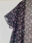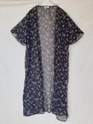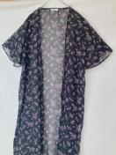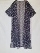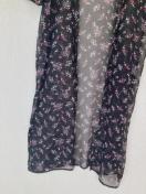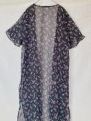 シースルーの黒い花柄のロング、カーディガン、軽やかなデザインで夏にぴったり。