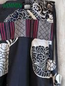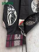 片ウエスト、ポケット口、裾にナガ族の織り生地が使われた和柄(太陽、雲)サルエル忍者パンツです。