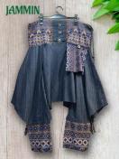 前ウエスト、ポケット部分、裾にモン族の刺繍柄生地が使われています。