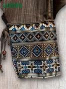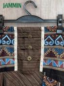 前ウエスト、ポケット部分、裾にモン族の刺繍柄生地が使われています。