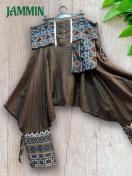 前ウエストとポケット口、裾に飾り鈴&古銭風ボタン付きの織り柄サルエル忍者パンツです。