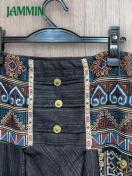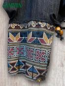 前ウエスト、ポケット部分、裾にモン族の刺繍柄生地が使われています。