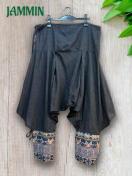 前ウエストとポケット口、裾に飾り鈴&古銭風ボタン付きの織り柄サルエル忍者パンツです。