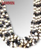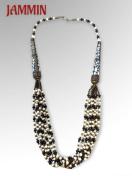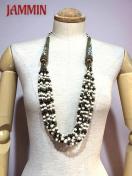 シェルやコーラルを使った大きなパーツや、ブラスビーズ、ボーンビーズを使った個性的なネックレスです。