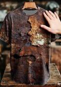 爆ヤス価格990円★レトロ メンズTシャツ アート 抽象幾何学プリント 半袖 USAサイズM(日本サイズXL相当)アースイエロー