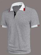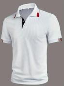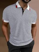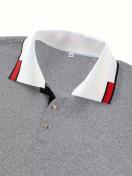 男性用テクスチャーのワッフルニットポロシャツ、コントラストトリム付き、カジュアルでスポーティな半袖、ボタンアップカラー、夏にぴったりのレギュラーフィット、夏のカジュアルウェア|コントラストトリムシャツ|洗練されたモダンなルック