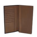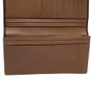 ■詳細説明/【人気商品】、<ガンチーニ>2つ折り長財布(小銭入れなし),表面全体にガンチーニロゴが型押しされたおしゃれなアイテム,カード入れ9、ポケット5、マチ付き札入れ,内側は、ダークキャメル系レザー