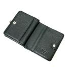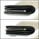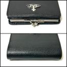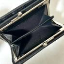 シボ加工を施した上質なレザーにシルバーのメタルオーブがアクセントになった二つ折り財布。コンパクトながら複数のカードスロットやポケットなど多彩な収納スペースを備えた、機能的な一品です。がま口タイプの小銭入れの扱いやすさもポイントです。