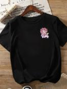 レディース ブラック 半袖 Tシャツ クルーネック 可愛い キャラクター ピンクドレス フローラルプリント MILKY テキスト 柔らかい 通気性 春夏 カジュアル トップス 洗濯機可 グラフィック デジタルプリント