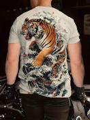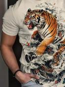 メンズ3DデジタルプリントタイガーグラフィックTシャツ - 鮮やかな山と波のデザイン、通気性のある半袖、カジュアルストリートウェア、四季を通じて快適なフィット感、アオールシーズンアパレル | 大胆なグラフィックティー | 耐久性のある印刷品質、タイガーシャツ