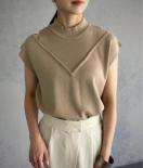 リブタンクトップをレイヤードさせたようなデザイン性のあるトップス。