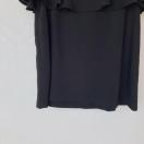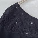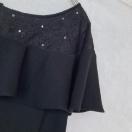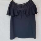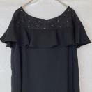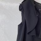 フリルとビーズ装飾が特徴の黒のノースリーブにフリル襟、袖の付いたプルオーバー トップス。