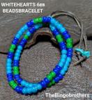 当時既にアンティーク(ヴィンテージ)として販売されていたホワイトハーツ(6o)3色を鹿革紐で組んだ二重巻ブレスレットになります。