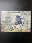 AH-6J/MH-6Jの1/35スケールモデル、兵士フィギュア付きで詳細なパーツが特徴。