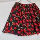 赤いチェリーのプリントが特徴のフレアミニスカート。
