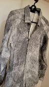 ブリーチ加工が施された薄手のロング丈のシャツです。