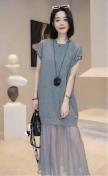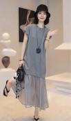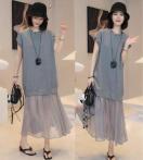 シフォン切り替えロング丈ワンピース