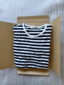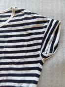 ・カラー;(上衣)白黒の横縞、(下衣)ベージュ。