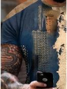 メンズ ストリートウェア 幾何学プリントTシャツ - ブルー&ゴールド コントラストデザイン、通気性 レギュラーフィット ラウンドネック 夏用カジュアルスポーツトップ、アーバンファッション、大胆なグラフィックス、耐久性のある構造、半袖シャツ、アーバンライフスタイル
