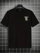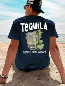 ポリエステル生地で作られたメンズ半袖Tシャツ。ワイングラスと英語テキストのプリントが特徴で、レギュラーフィットのスタイリッシュなカジュアルなラウンドネックデザイン。春夏のアウトドアウェアに最適。