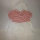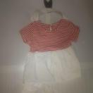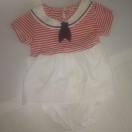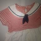 マリン風デザインの赤と白のワンピース。
