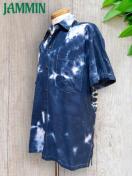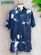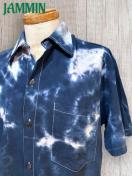 ネイビーベースのアジアンなタイダイ半袖シャツです。