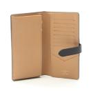 コントラストカラーのライニングを施した内装には、8つのカードスロット、ファスナー付きコインポケット、チケットや紙幣用の大ぶりの「V」シェイプのスロットを備えています。