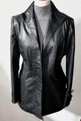 比翼タイプのシンプルなショート丈コート的なジャケット型ですが、革の柔らかな質感と特有の艶のある風合いがゴージャス