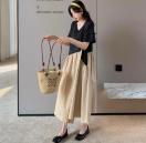 配色フレアロング丈ワンピース