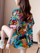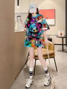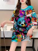 レディース カジュアル サマーTシャツ ビビッド カートゥーン ベア プリント 快適 通気性 ルーズフィット オールシーズン 着用 通気性 衣類 プレイフル プリント トップス 快適 フィット