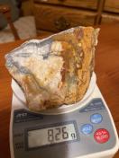 佐渡の希少な金を含む佐渡産の金鉱石です。826グラムとズシリと重いです。これが金鉱石です。サイズは12センチ×14センチ×11センチくらいです。もう発掘が禁止されていますから、今流通している金鉱石だけになります。送料はこちらが負担。多少の値引き交渉には応じさせていただきます。締切日時