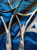 右の白いラケットは、トップにガードシール貼ってます。