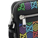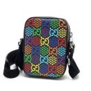 ■詳細説明/【人気商品】、<GGサイケデリック>ショルダーバッグ(斜めがけポシェット),カラフルなGGロゴがデザインされたアイテム,ショルダーの長さ:75.0〜115.0cm(調整可能)、幅:3.0cm,前面にファスナー付きポケット,シルバー金具,ファスナー開閉式