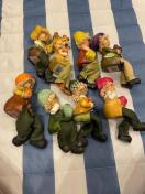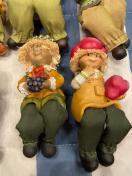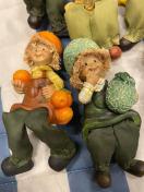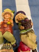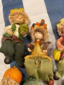 多彩な農作物を持つおすわり人形セット、秋の収穫祭の雰囲気です